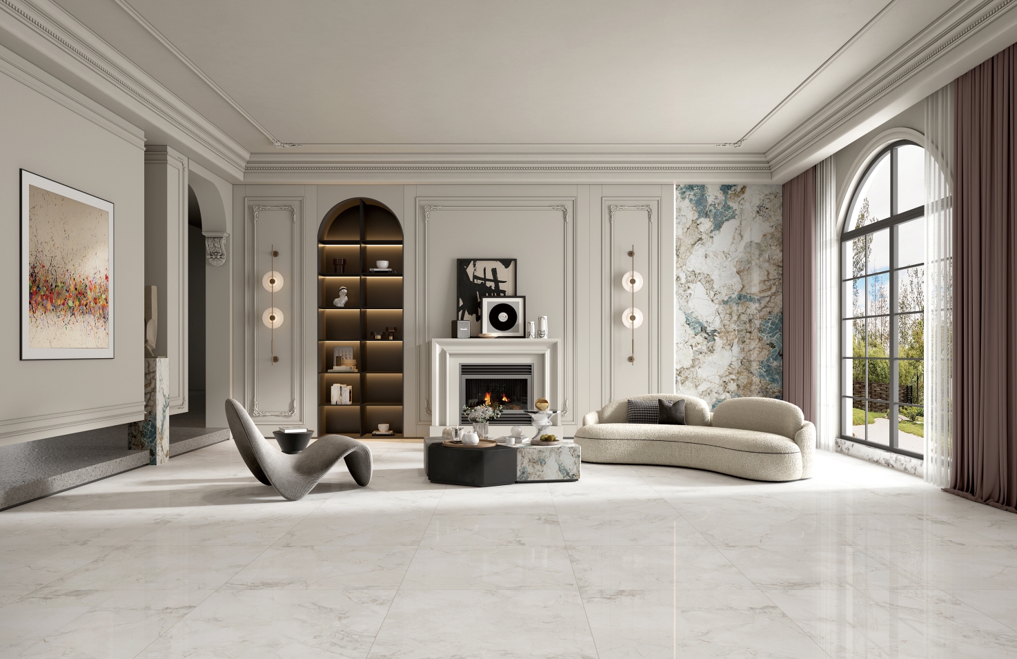 取自珍貴石材精髓,融入古冰川之意境,質地靈透,天然的紋理正如風雪吹過的痕跡,更顯沉穩,營造極致簡約的空間質感。
