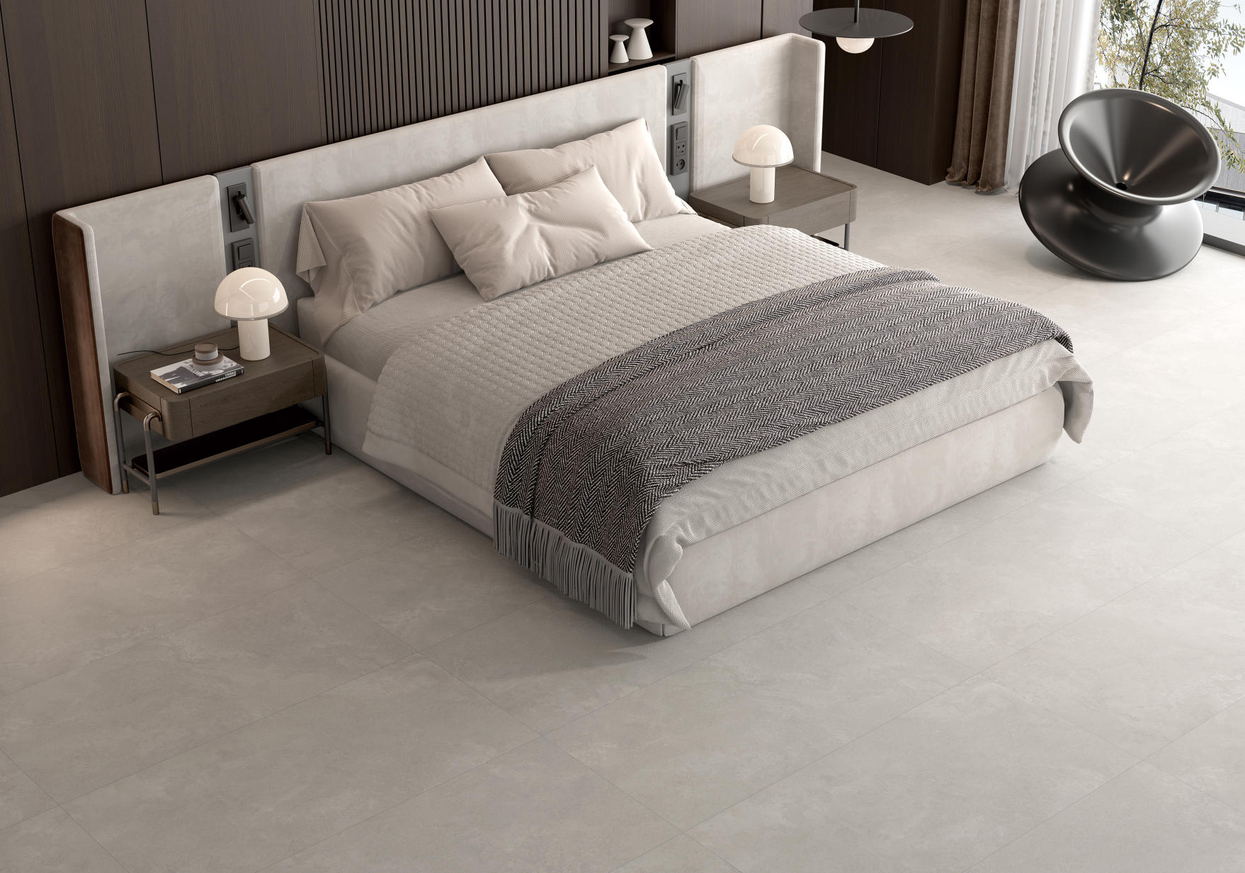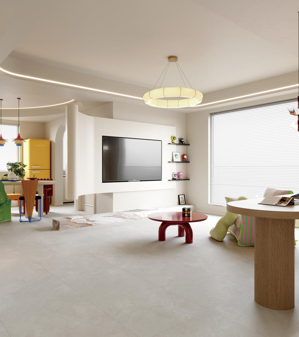 獨特時尚的米杏色調,變幻莫測的漸變紋理流動,彷如歲月的雕琢,給空間帶來連貫、完整、延伸的無垠視界。