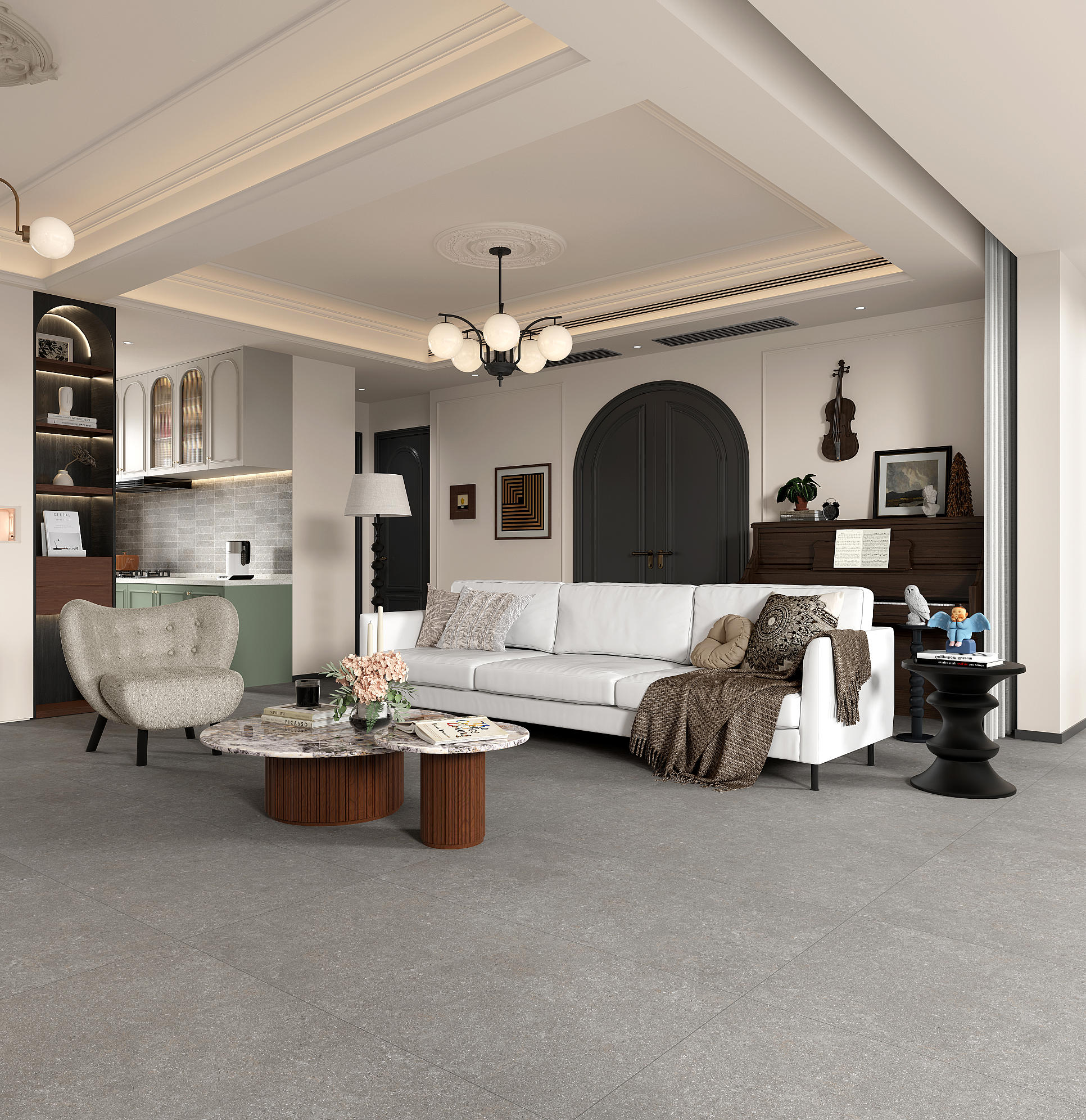 靈感源于薄霧籠罩的古老海岸。色調清冷而高級,還原了冰川期海床或風雨侵蝕后的石灰巖本質。細膩的灰調肌理帶有天然的水墨暈染感,如海霧彌漫,傳遞出永恒的寧靜與現代的克制美學。(薄霧海岸的永恒靜謐)