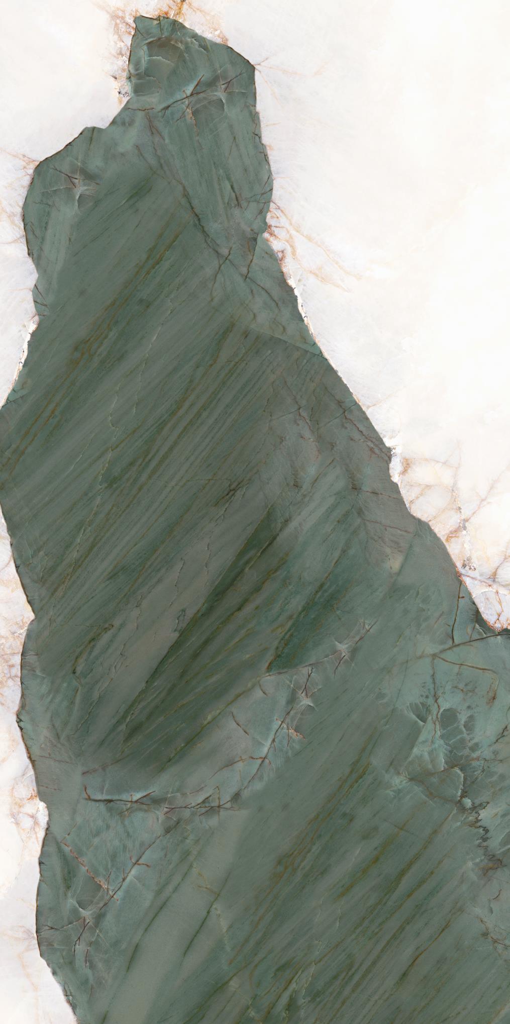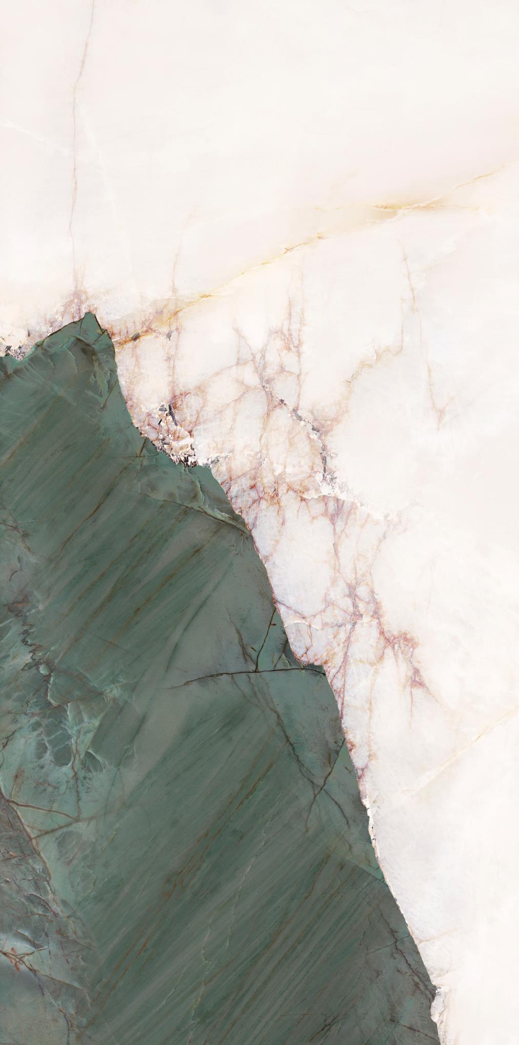 源于安第斯山脈上的珍罕寶玉。高飽和度的綠色基調,勝似哥倫比亞祖母綠,蜿蜒的紋理,宏如萬頃碧波浩蕩之勢;肆意延伸的暖色紋理,似冰似玉且溫凈無瑕,有凝靈透徹之感。渾然天成的通透美感散發出與生俱來的高貴,寓意祥瑞降臨、地位尊崇的象征,更為空間平添幾分生機盎然。