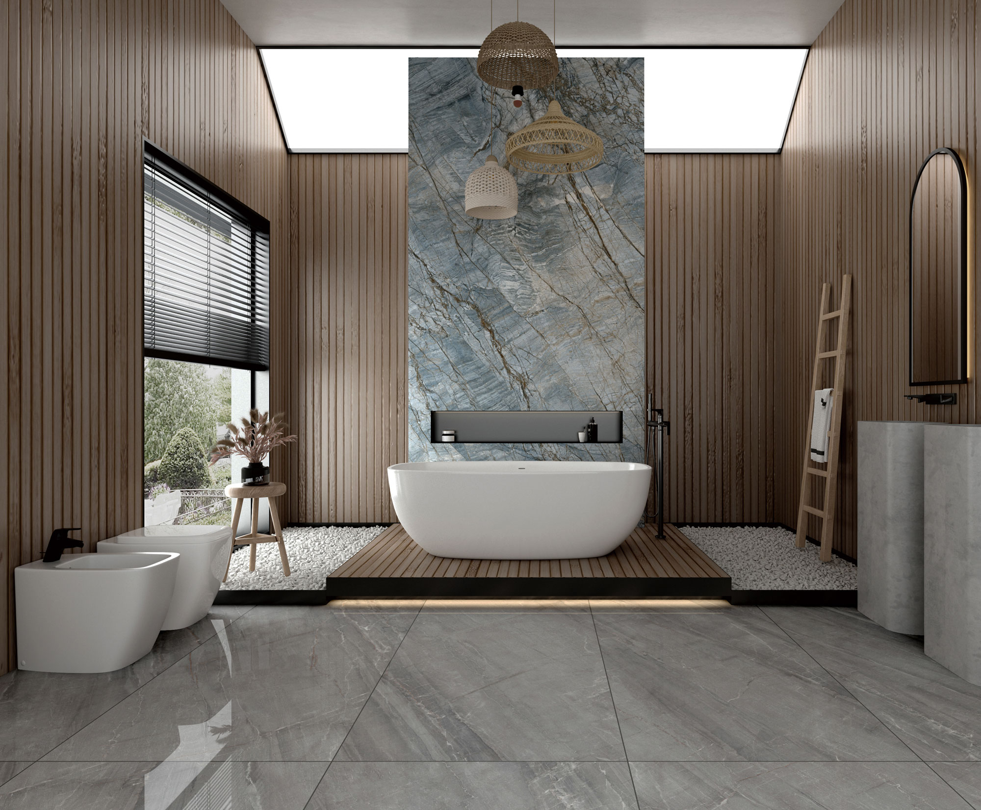 從北大西洋中脊澄凈空明的瓦塔納冰川汲取靈感,集合了冰川的色澤和紋理,還原冷冽氣息的圣山水晶,像是把水下根脈和冰河湖,一針一線地縫進巖板上。清冷的紋理色彩猶如生命般堅毅,斑駁交錯的根脈散紋在平面盛開。親近其中,如同一道天然的灰藍色屏障縈繞在側,連呼吸都前所未有的暢快。